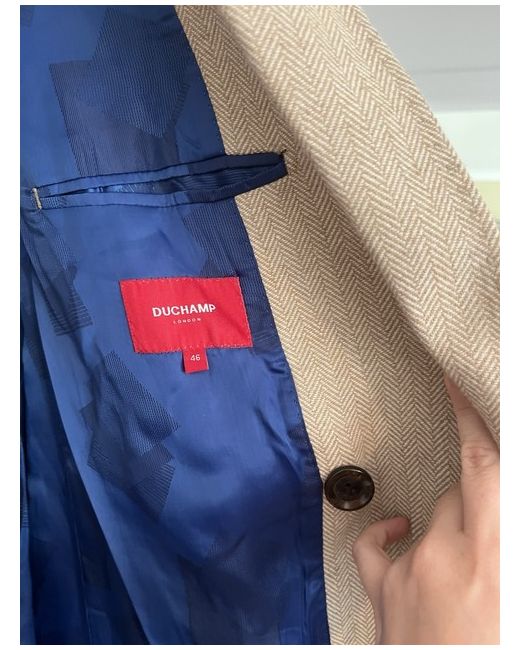 This Men's Duchamp Beige Jacket in size 46R is made from wool with a button closure, perfect for casual occasions in the winter season. The regular fit overcoat features a neutral beige colour, making it versatile for various outfits. Ideal for walking and everyday wear, this brand new never worn jacket is a stylish and practical addition to any man's wardrobe. Remember to dry clean only to keep it looking sharp.