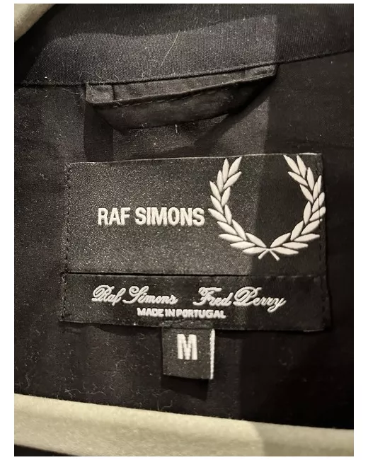 A rare and collectible piece from the Raf Simons x Fred Perry collaboration — perfect for fans of designer streetwear. Details: • Large METANOISE print on the back • Fred Perry laurel wreath logo patch on chest with “Raf Simons” embroidery • Front zip closure with laurel wreath-shaped zipper pull • Two front buttoned pockets • Ribbed hem and cuffs for a snug fit • High collar with snap-button fastening