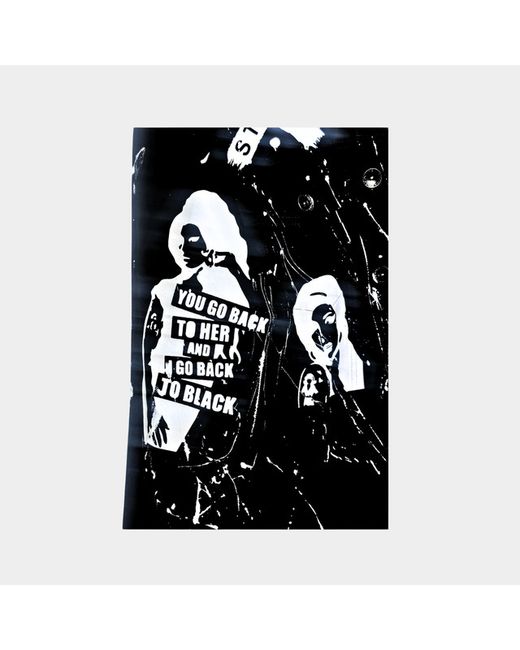 Photo collage of Amy Winehouse in iconic black-and-white shots. “Back to Black.”. Striking black denim with white splatter paint detailing. Premium quality denim built for durability and layering.