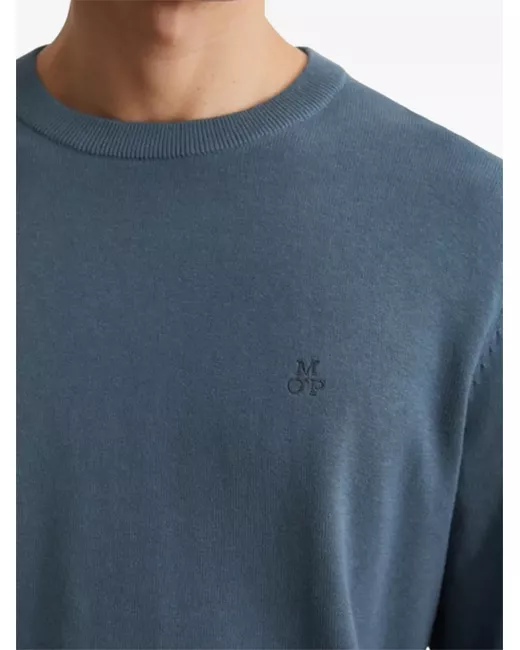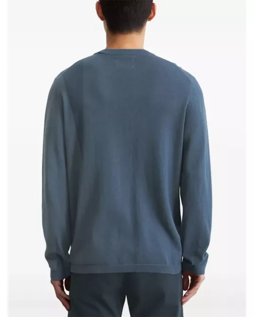 blue cotton-cashmere blend long sleeves crew neck embroidered logo