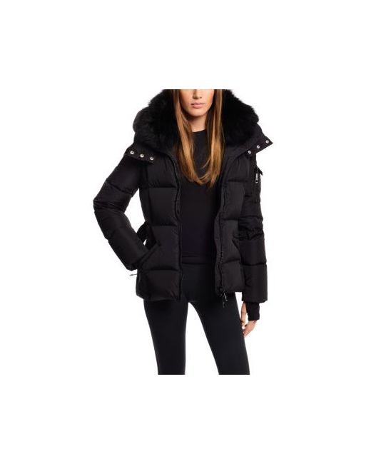 Sam. Delilah Quilted Down Jacket.Color:Black.Size:XS.Material:100% nylon; lining: 100% nylon; trim: feathers; real lamb shearling trim, origin: Tibet, dyed; fill: 90% duck down/10% feathers.Jackets.