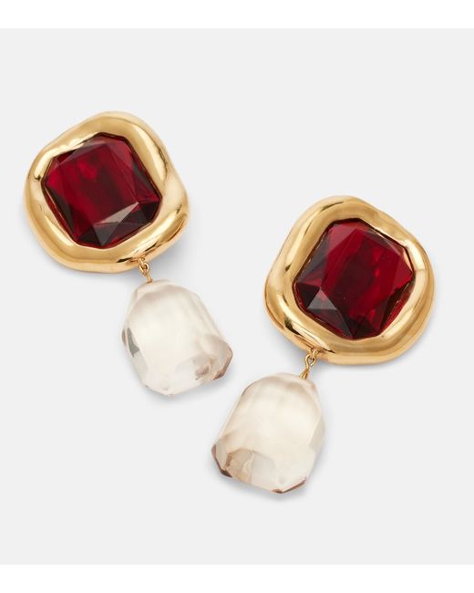 Material: brass, crystal. Made in Italy. Item color: gold, red. Closure: clip-on.