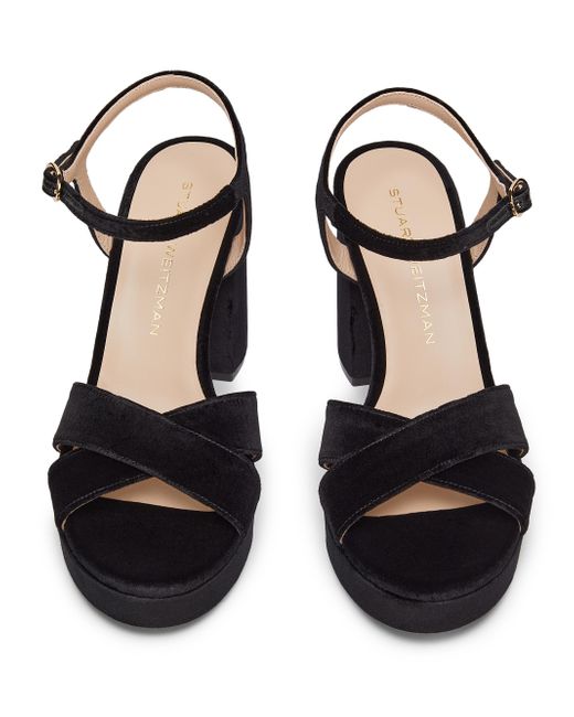 Made in Spain, these Dayna platform sandals from Stuart Weitzman are crafted of velvet and feature a 90mm block heel. Open toe Buckle closure Cotton upper Leather lining Leather and TPU sole Made in Spain SIZE Block heel: about 3.5" (90mm) Platform heel: about 0.75" (20mm) ABOUT THE BRAND Designer Stuart Weitzman started his career designing for his father's shoe company, before launching his own brand in 1986. Known for his glamorous pumps and over-the-knee boots, Weitzman has also incorporated unique materials in his designs, ranging from Lucite and wallpaper to cork, vinyl and even gold. Today, the label continues to create classic, feminine silhouettes that balance both comfort and style. Women's Shoes - Stuart Weitzman Wmn Shoe > Stuart Weitzman > Saks Fifth Avenue. Stuart Weitzman. Color: Black. Size: 10.