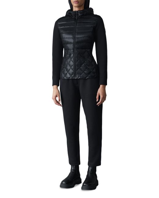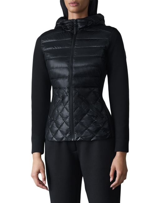 Mackage's Agatha is a fitted, mixed-media jacket that features a quilted bodice, an adjustable hood with a bungee cord and stopper. The double-face jersey sleeves and back enhance comfort. Hooded Long sleeves Side seam pockets Zip-front closure 53% cotton/47% polyester Combo: 100% nylon Lining: 100% nylon Machine wash Imported SIZE & FIT About 23.25" from shoulder to hem Model measurements: 5'10" tall Model is wearing a US size Small ABOUT THE BRAND Founded in Montreal in 1999, Mackage began as a comprehensive outerwear brand offering everything from fine leather jackets to tailored wool coats and down parkas. The label evolved to develop superior construction and comfort, creating flattering and elegant silhouettes. Mackage is committed to quality and performance with an eye toward aesthetic innovation in its women's, men's and kids' designs. Outerwear And Swimwear - Down > Mackage > Saks Fifth Avenue. Mackage. Color: Black. Size: XS.