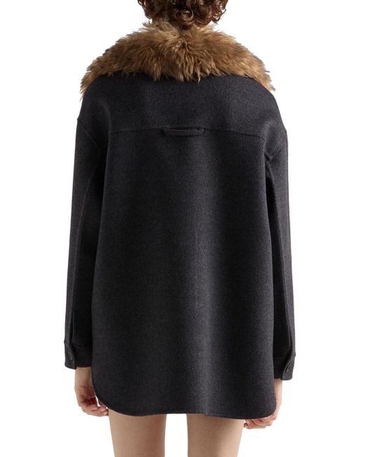 Oversized fit Unlined Shirt-style collar Front button closure Sleeves with cuffs Inseam pockets Enameled metal triangle logo Imported 20% Cashmere, 80% Fleece Wool. Lsd Rtw - Prada Rtw > Prada > Saks Fifth Avenue. Prada. Color: Grey. Size: 0.