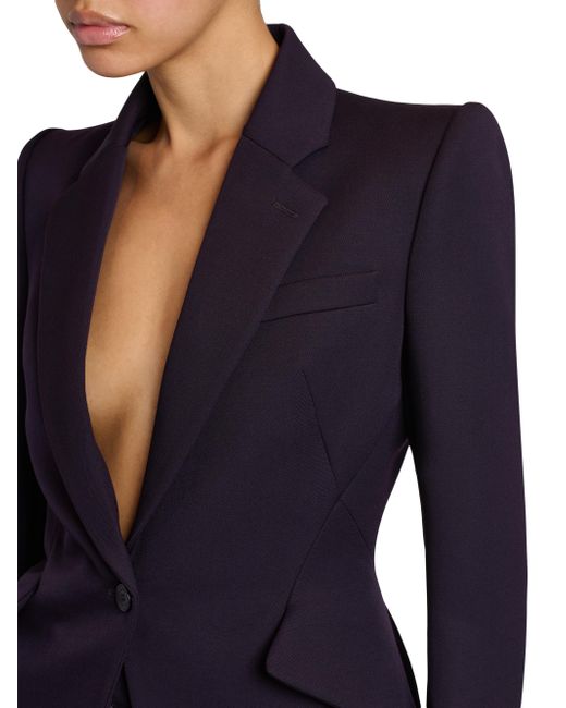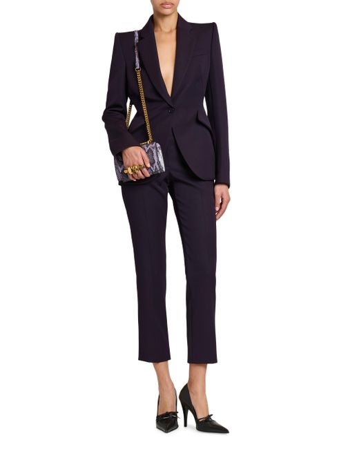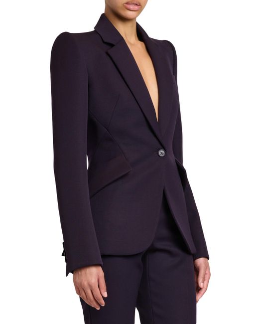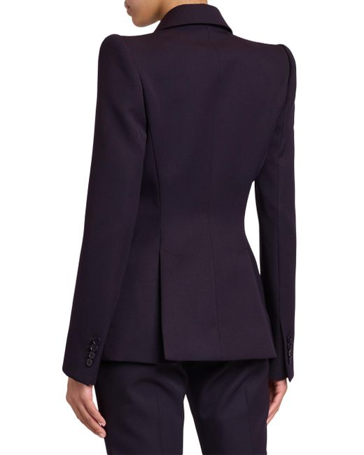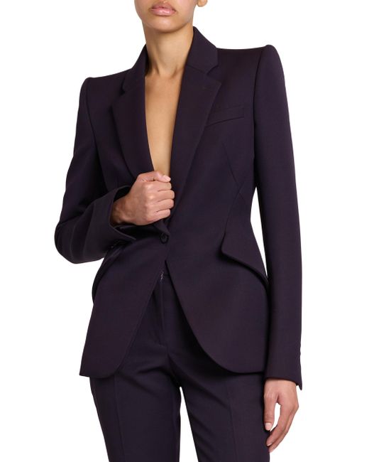Crafted of grain de poudre wool, this McQueen blazer features notch lapels, long sleeves with button cuffs, and structured shoulders. Notch lapels Structured shoulders Long sleeves, button cuffs Chest welt pocket Sideflap pockets Back vent One-button closure 100% wool Dry clean Made in Italy SIZE & FIT Model measurements: 5'10" tall Model is wearing a US size 4 ABOUT THE BRAND Visionary designer Lee Alexander McQueen launched his brand in 1992, which quickly became synonymous with cutting-edge, avant-garde design. Creative Director Seán McGirr has continued the designer's legacy, bringing precision craftsmanship and a feminine vision to the label's signature edge. Advanced European - Alexander Mcqueen > Mcqueen > Saks Fifth Avenue. McQueen. Color: Violet. Size: 2.