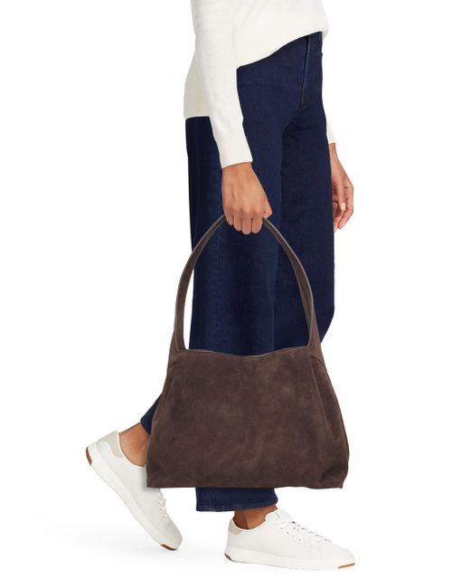 From the Slade Collection. This shoulder tote bag from rag & bone, crafted of suede, is designed with a slouchy silhouette, protective metal feet, and a magnetic snap closure. Shoulder strap Interior: one zip pocket and two compartments Protective metal feet Magnetic snap closure Suede Cotton lining Imported SIZE About 13"W x 10"H x 4.5"D Shoulder strap: about 14" drop ABOUT THE BRAND In 2002, rag & bone founder Marcus Wainwright combined his British heritage with a downtown-New York aesthetic to set the tone for the label. At the heart of the edgy-yet-laid-back brand is its focus on quality craftsmanship and attention to detail. The epitome of cool, off-duty style, it's no wonder the signature second-skin denim is favored by many. Handbags - Contemporary Handbags > Rag & Bone > Saks Fifth Avenue. rag & bone. Color: Chocolate.