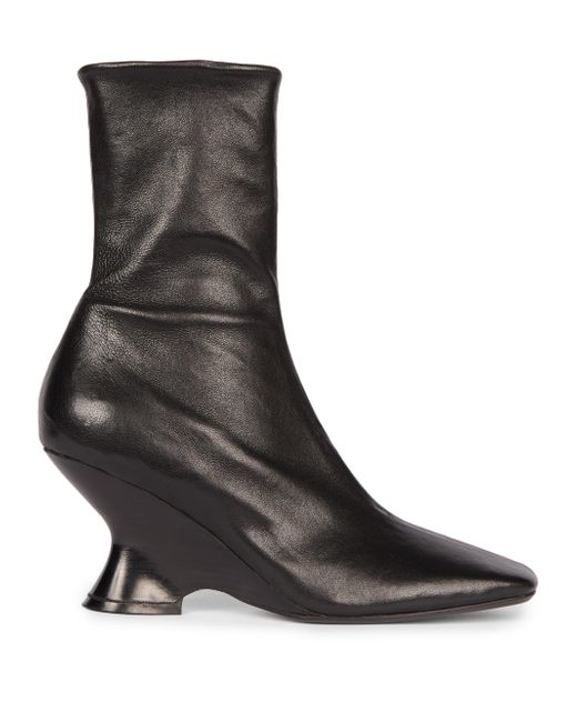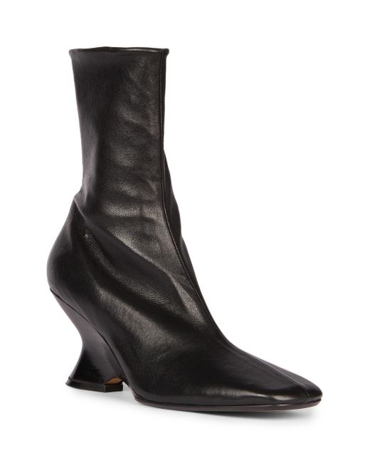 Made in Italy, these booties from Dries Van Noten are crafted of leather and feature a curved wedge heel. Square toe Side zip closure Leather upper Leather sole Made in Italy ABOUT THE BRAND Designer Dries Van Noten was part of the Antwerp Six, an influential group of fashion designers who graduated from the Royal Academy of Fine Arts in Antwerp in the 1980s. Van Noten is known for his intellectual aesthetic, using artful textiles and lush prints to craft his ready-to-wear, shoes and accessories. Women's Shoes - Advanced Women's Designe > Dries Van Noten > Saks Fifth Avenue. Dries Van Noten. Color: Black. Size: 8.5.