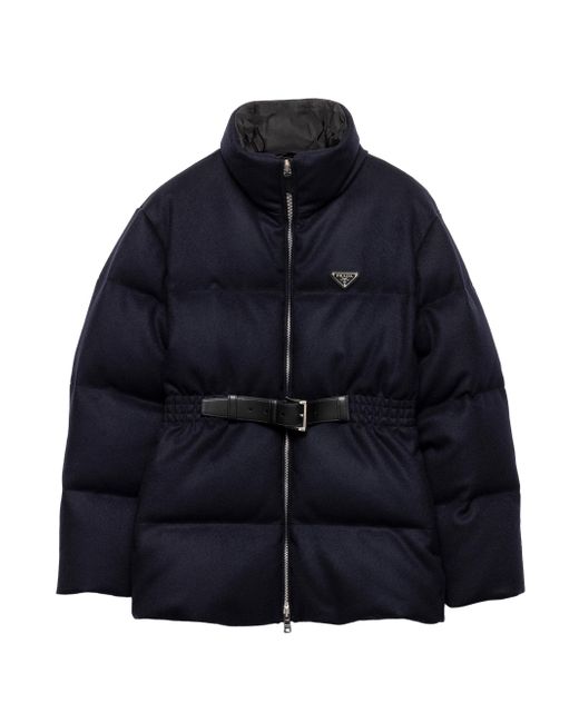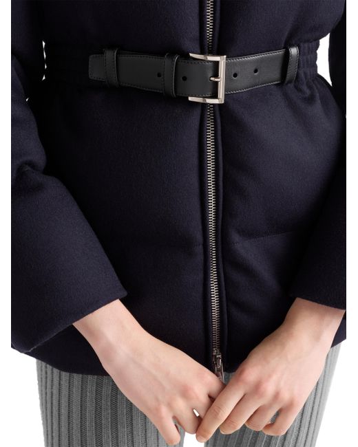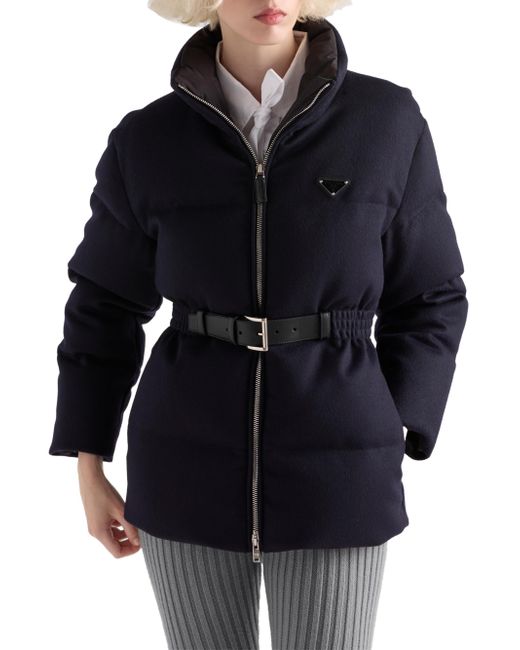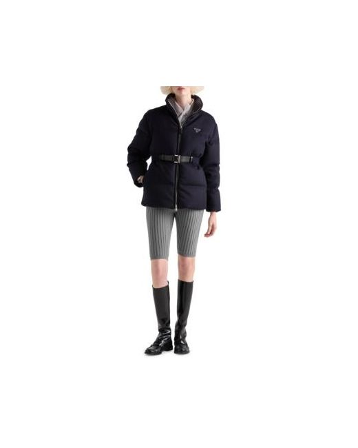 Relaxed fit - The garment fits up to one size larger Goose down padding Stand-up collar Long sleeves Straight cuff Zipper closure Fabric triangle logo Internal pocket with button Leather belt Lined garment Elasticized waist Inseam pockets Made in Italy 100% Fleece Wool, 100% Calf Leather. Lsd Rtw - Prada Rtw > Prada > Saks Fifth Avenue. Prada. Color: Navy Blue. Size: 2.