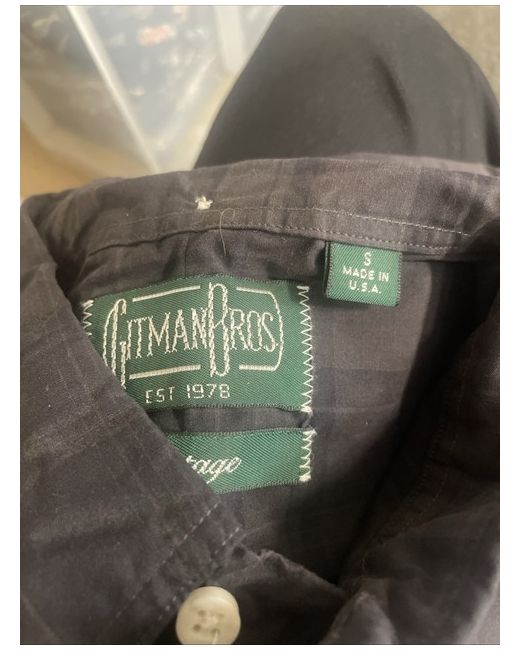 The Gitman Bros. Men's Shirt in size small is a versatile addition to any man's wardrobe. Made from cotton, this regular fit button-up shirt features a collared neckline and long sleeves, making it perfect for casual occasions in the spring season. Its timeless blue colour adds a classic touch, while its midweight design ensures comfort and durability. Machine washable and crafted in the United States, this shirt combines quality and style effortlessly, making it a stylish choice for everyday wear.