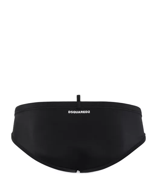 black drawstring waist logo lettering low rise close-fitting brief cut Be mindful to try on swimwear over your own garments.