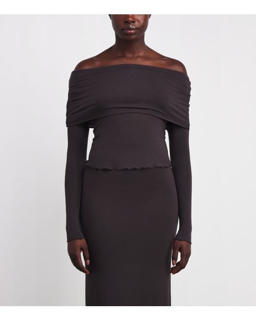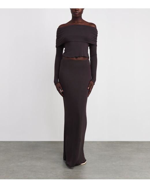 Crafted from a blend of modal, cashmere and stretch, skims' Sheer Modal collection combines the label's signature comfort with a seductive underpinning. Super-soft and drapey, this top presents an elevated take on a loungewear basic with its off-the-shoulder neckline and extra-long sleeves. uk size conversion: xxs = uk 0, xs = uk 2-6, S = uk 8-10, M = uk 12-14, L = uk 16-18, xl = 18-20, 2X = uk 20-22, 3X = uk 24-26, 4X = uk 28-30