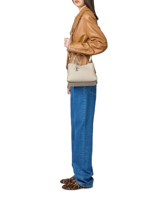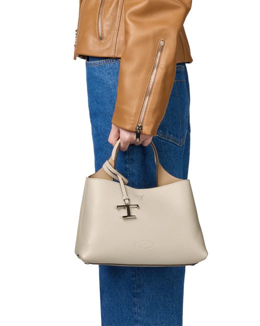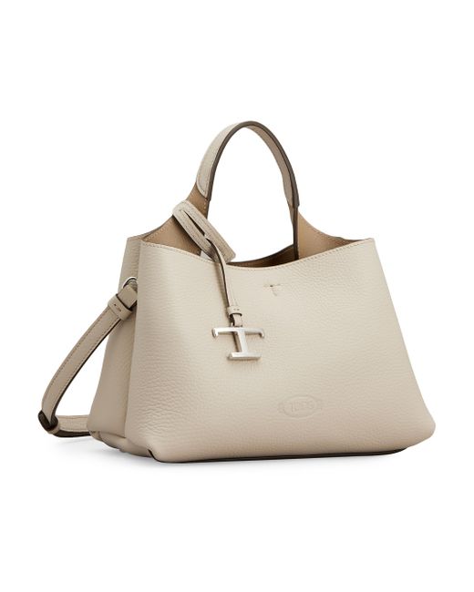This top handle bag from Tod's is crafted of supple leather and features a stamped logo on the front, removable shoulder strap, and metal T pendant. Top handle Adjustable shoulder strap Interior: one zip pocket and two compartments Protective metal feet Dust bag Snap-hook closure Leather Lining: leather Made in Italy SIZE About 9.75"W x 6.75"H x 5.75"D. Handbags - Designer Handbag Multi > Tod's > Saks Fifth Avenue. Tod's. Color: Mastice Corda.