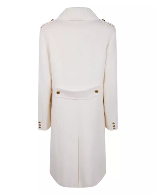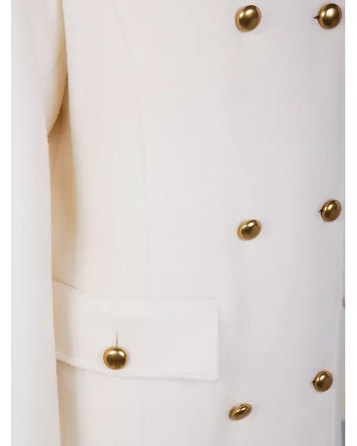 cream double-breasted fastening gold-tone buttons ribbed collar flap pockets
