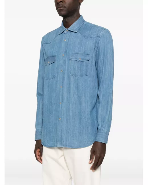 light blue button fastening chest flap pockets long sleeves buttoned cuffs