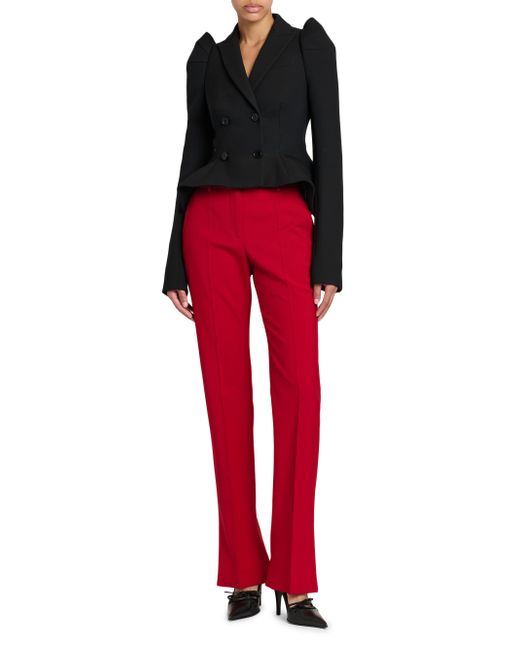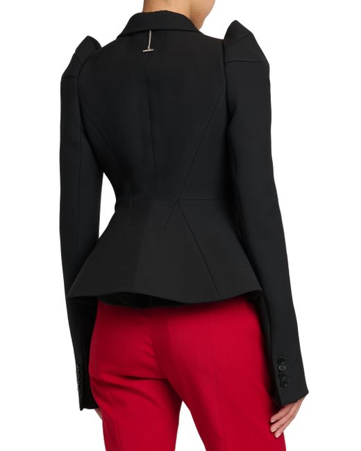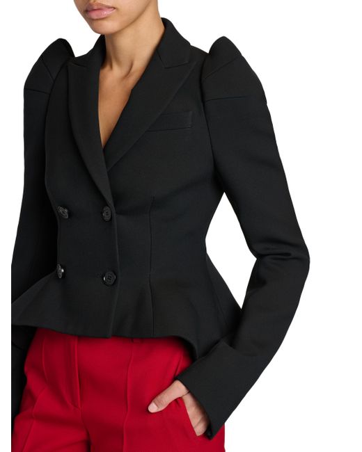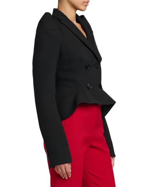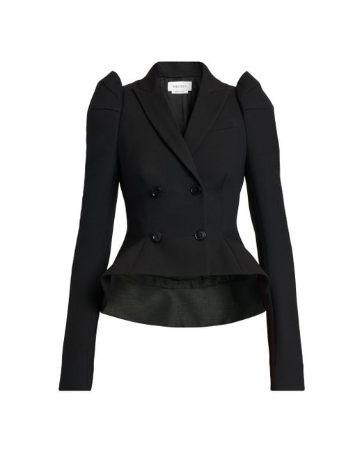 Crafted of stretch gabardine wool, this McQueen double-breasted crop blazer features dynamic puff shoulders and a flared, high-low peplum hem. Notch lapels Puff shoulders Long sleeves, button cuffs Chest welt pocket Peplum hem Double-breasted button closure 98% wool/2% elastane Dry clean Made in Italy SIZE & FIT Model measurements: 5'10" tall Model is wearing a US size 4 ABOUT THE BRAND Visionary designer Lee Alexander McQueen launched his brand in 1992, which quickly became synonymous with cutting-edge, avant-garde design. Creative Director SeĂ¡n McGirr has continued the designer's legacy, bringing precision craftsmanship and a feminine vision to the label's signature edge. Advanced European - Alexander Mcqueen > Mcqueen > Saks Fifth Avenue. McQueen. Color: Black. Size: 4.