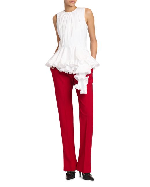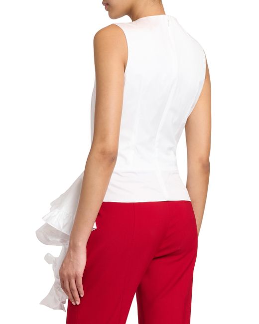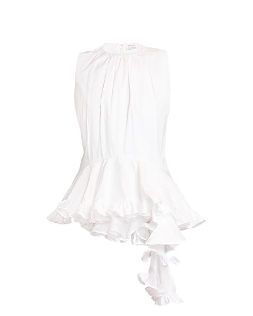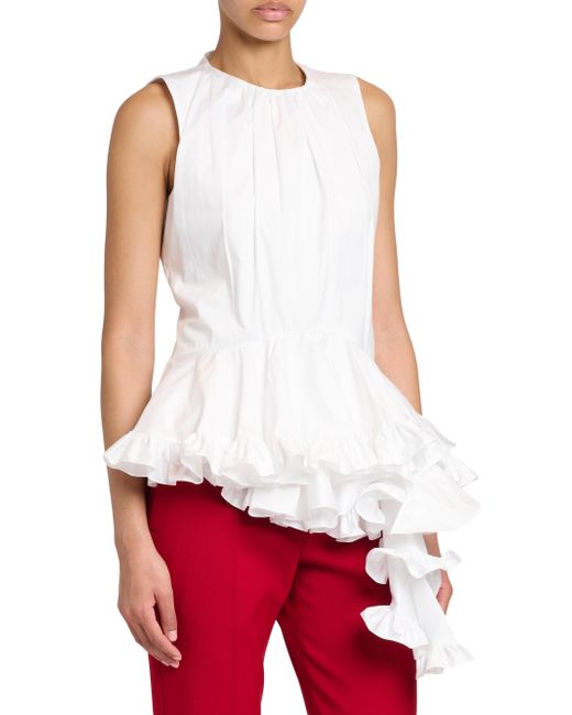Crafted of crisp Italian cotton, this sleeveless crewneck top from McQueen features an asymmetric design accented with a gathered bodice, ruffle hem, and side cascading detail. Crewneck Sleeveless Ruffle hem Concealed back zip closure 100% cotton Dry clean Made in Italy SIZE & FIT Model measurements: 5'10" tall Model is wearing a US size 4 ABOUT THE BRAND Visionary designer Lee Alexander McQueen launched his brand in 1992, which quickly became synonymous with cutting-edge, avant-garde design. Creative Director Seán McGirr has continued the designer's legacy, bringing precision craftsmanship and a feminine vision to the label's signature edge. Advanced European - Alexander Mcqueen > Mcqueen > Saks Fifth Avenue. McQueen. Color: Optical White. Size: 4.