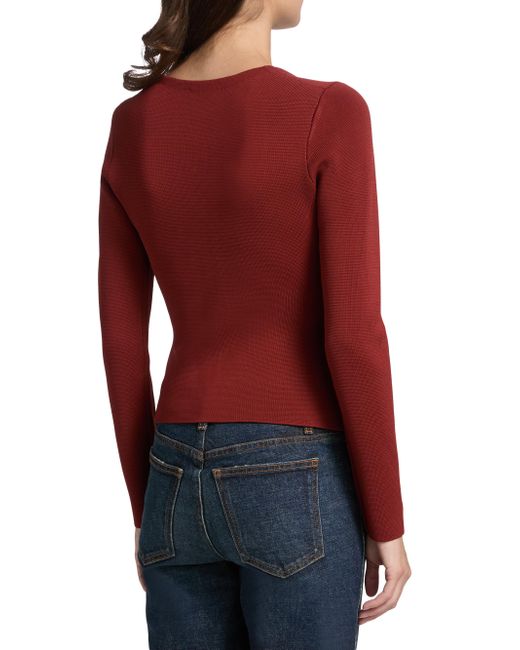 Staud's Rachela knit top highlights the jacket-inspired look with a square neckline, button-front closure, and rib-knit trims at the patch pockets. Square neck Long sleeves Front patch pockets button-front closure 80% viscose/20% nylon Dry clean Imported SIZE & FIT About 20" from shoulder to hem Model measurements: 5'10" tall Model is wearing a US size Small. Contemporary Sportswear - Contemporary Collections > Staud > Saks Fifth Avenue. Staud. Color: Sangria. Size: XS.