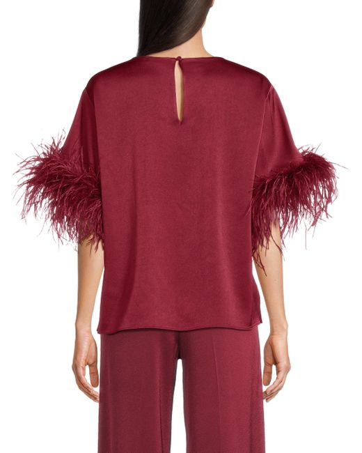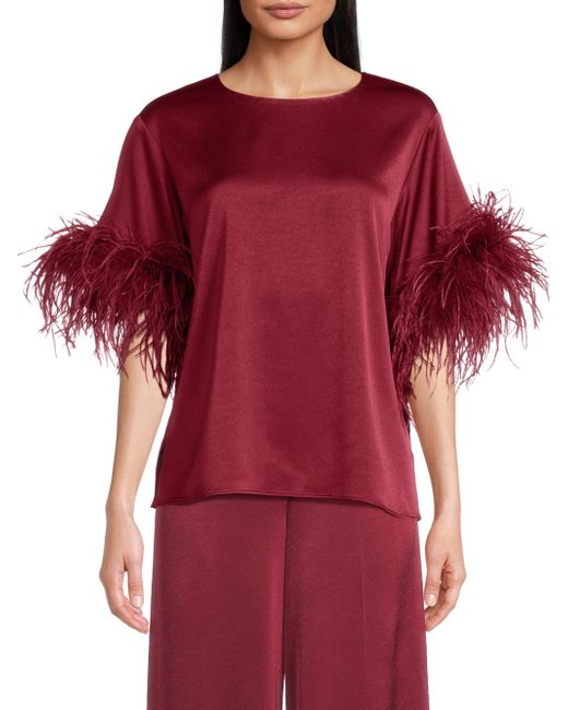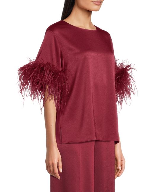 ONLY AT SAKS. The Aria short-sleeve blouse from Ungaro is crafted of satin back crepe and detailed with feather trim. Round neck Short sleeves Feather trim Back button keyhole closure 82% triacetate/18% polyester Dry clean Imported SIZE & FIT Model measurements: 5'10" tall Model is wearing a US size 4. Modern Collections - Branded Separates > Ungaro > Saks Fifth Avenue. Ungaro. Color: Tawny. Size: XS.