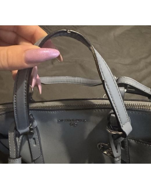 The Michael Kors Medium Leather Bag is a stylish shoulder bag in a rectangular shape, perfect for casual occasions. Made from luxurious leather in a baby blue colour with gold hardware accents, this bag exudes designer elegance. The bag features a zip closure, inner pockets, and comes with a detachable strap in a matching blue leather material. With a spacious size of 30cm in width and 24cm in height, this medium-sized bag is a versatile option for everyday use, making it a must-have accessory for any fashion-forward woman.