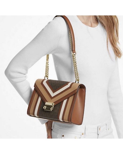 The Michael Kors Purse is a stylish and practical accessory for women. Made from brown leather with gold hardware accents, this medium-sized shoulder bag features a detachable strap for added versatility. Perfect for casual occasions, the purse includes inner pockets for organization and is designed by the renowned brand Michael Kors. Its designer theme and high-quality materials make it a fashionable and timeless accessory for any wardrobe.