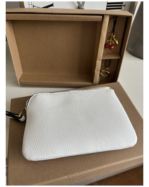 The Coach White Clutch with a Red Cherry Pouch is a stylish accessory designed for women. Made from a combination of canvas and leather, this exterior in brilliant white adds a touch of elegance to any outfit. The inclusion of keychains adds a practical and trendy element to the design, making it a perfect choice for those looking for a chic and versatile clutch.
