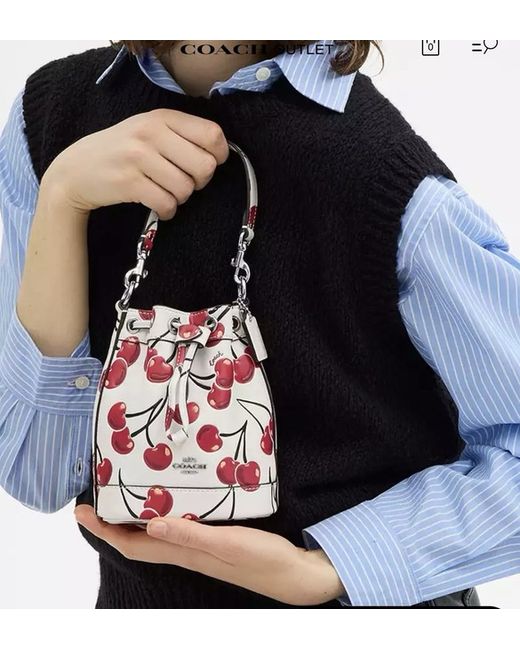 Cherry bucket bag from coach. The original pice is £395 and I paid £189, outlet price. pls note this is the small bucket bag ( not the smaller wristlet). I have a standard price set this end. New and unused.