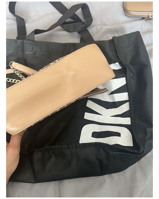 This DKNY Women's Handbag is a stylish and practical accessory for everyday use. Made from black leather with a beige handle, it features a rectangular shape and has a zip closure for security. The medium-sized bag is perfect for casual occasions, with a fabric lining and inner pockets for added convenience. The designer brand and sleek shoulder bag style make it a fashionable choice for any woman looking to add a touch of sophistication to her outfit.
