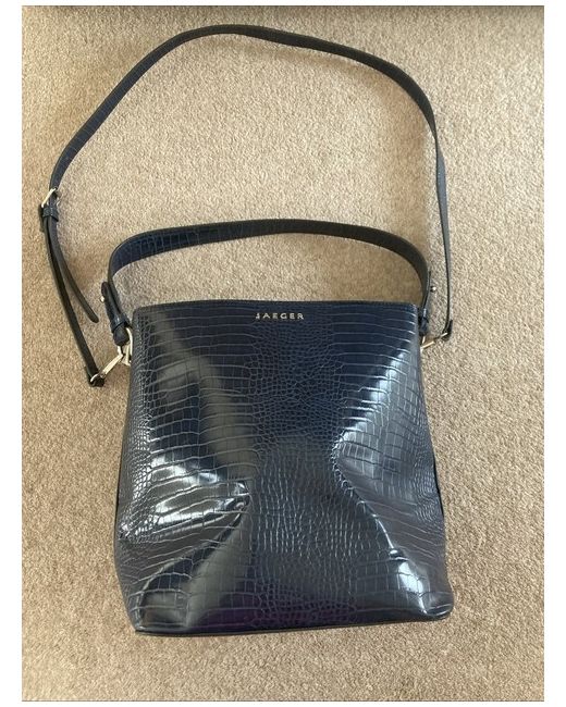 Brand-new without tags Jaeger navy crocodile effect bag . It comes with a shoulder strap and handheld strap as well, the bag measures approximately 30 cms x 35cms and depth of bag approximately 19 cms. From a smoke free home . payment placed within 48 hours and postage to the UK only.