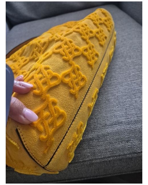 This medium-sized rectangular clutch bag for women features a striking dark yellow suede exterior, making it a stylish accessory for any outfit. The detachable strap adds versatility to the design, allowing it to be worn as a shoulder bag or carried as a clutch. Perfect for adding a pop of colour to any ensemble, this chic and practical handbag is a must-have for any fashion-forward woman looking to elevate her look with a versatile accessory.