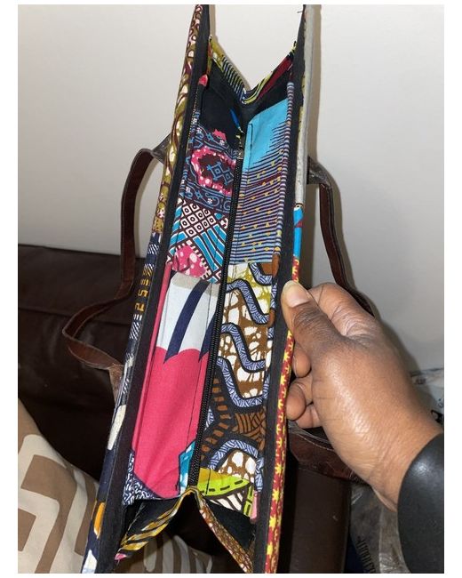 Large handmade ethnic patchwork shoulder bag with leather trimmings (base and straps)