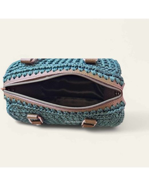 Boulet Style Handbag 🌿. Add a touch of artisanal charm to your wardrobe with this beautifully handcraftedBoulet-style handbag fromAlyBry by Cris&Bo Handmade. Designed in a unique barrel-like silhouette, it features a richforest green crochet body paired with stylisharmy green faux leather details.
