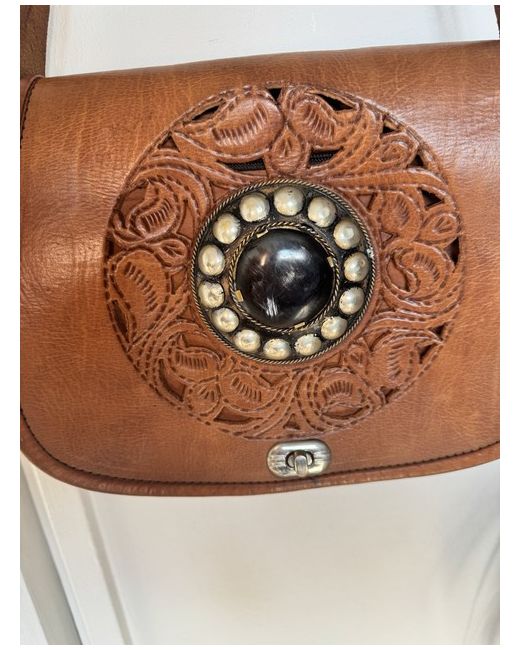 RRP 150 ANTIK BATIK FRANCE Handcrafted 100 Leather Beaded Crossbody Pouch Bag