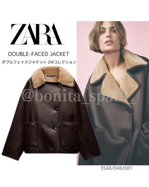 Zara New Woman Double-Faced Jacket Zw Collection Brown Ecru M 3548/246