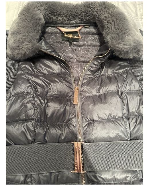 This Ted Baker Women's Coat in size 1 (6-8) is a stylish and versatile addition to any wardrobe. Made from durable polyester, this grey quilted coat features a zip closure and is suitable for various occasions from casual to formal. The regular fit and size make it a comfortable and flattering choice for the winter and autumn seasons. Easy to care for with machine washable properties, this coat is a must-have for women who appreciate quality and style.