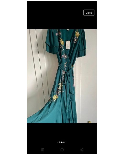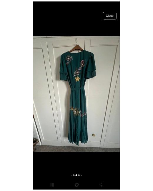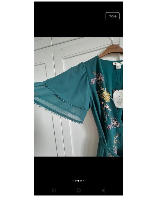 Monsoon Wanda floral embellished dress in teal. silhouette and a vibrant green colour that is sure to. flutter sleeves, this fit & flare style dress is made from. sequin accents. The dress is designed with a flattering.
