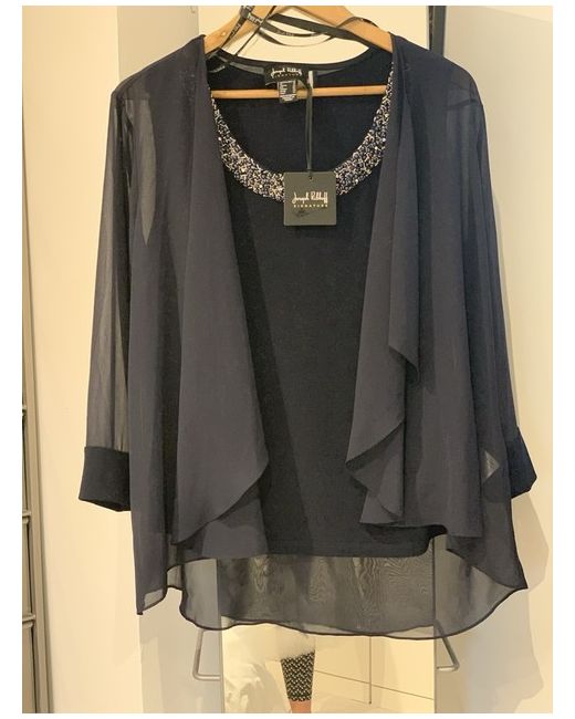 Scoop neck jersey sleeveless top, bead detailing along neckline, with matching chiffon waterfall jacket Midnight navy Beautiful simple evening wear Price new £325!