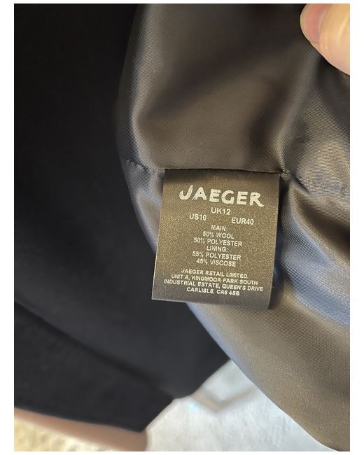 This Jaegar Wool Coat in size 12 is a stylish and versatile addition to any woman's wardrobe. The long length, button closure, and belted design make it perfect for a casual yet fashionable look. Made from high-quality wool with a polyester lining, this coat is ideal for keeping warm in winter, autumn, and spring. The classic black colour and overcoat style ensure a timeless and sophisticated appeal, making it a must-have for the modern woman.