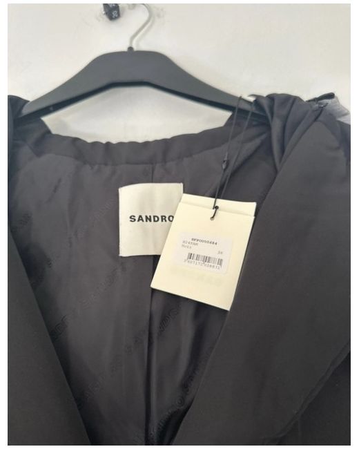 The Sandro Coat in size 36 is a stylish puffer jacket designed for women. Made from polyester with a wool insulation material, this mid-length coat is perfect for the winter and autumn seasons. The black colour, regular fit, and casual occasion make it a versatile piece that can be worn with different outfits. Care instructions recommend a dry clean only, ensuring the coat stays in top condition for years to come. Perfect for staying warm and on-trend during the colder months.