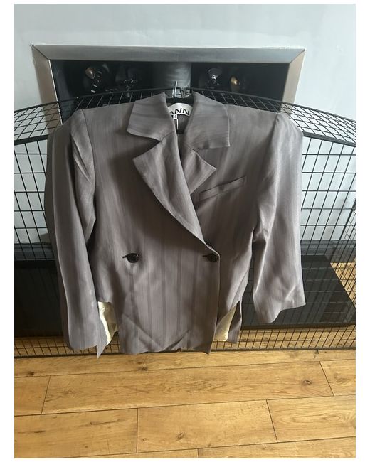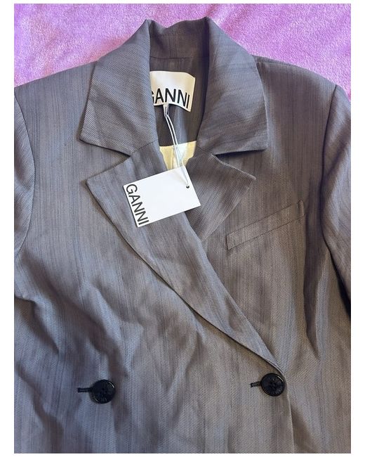 Ganni Blazer Slit Sides Grey Size 12 Beautiful Ganni lining Shoulder pads 2 front buttons RRP £ 325 Never worn