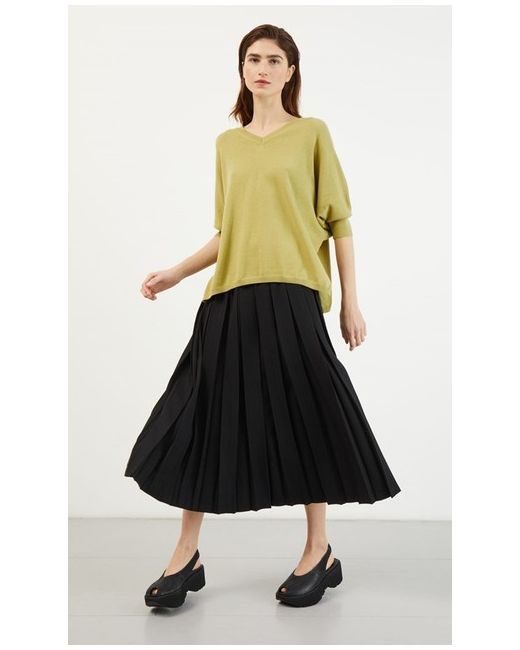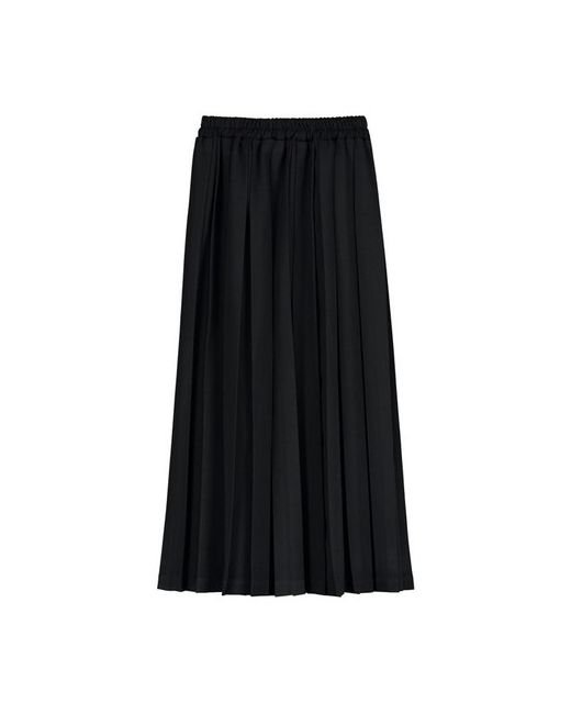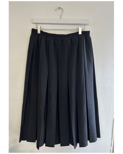 Black midi length skirt with hand pleated box pleats and an elasticated waistband. Responsibly crafted in London.