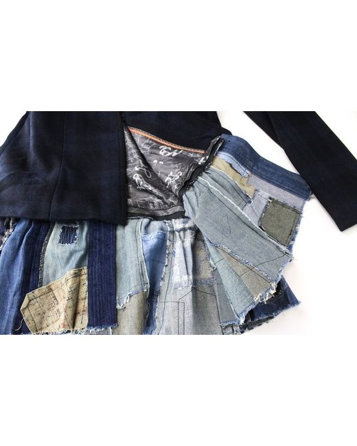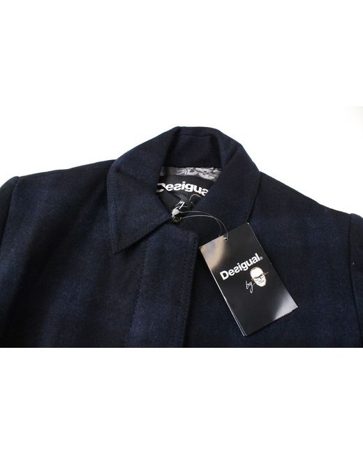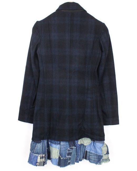Blue Snowrobot Womens Jacket 36 Check Pattern Wool Cotton Blend Coat