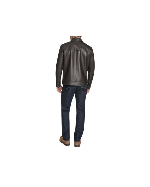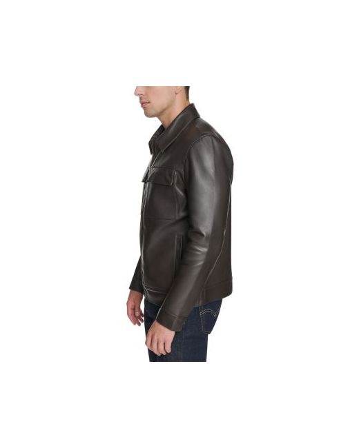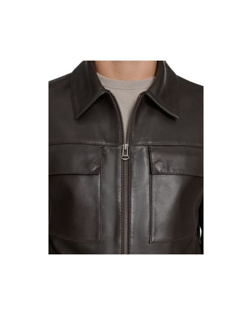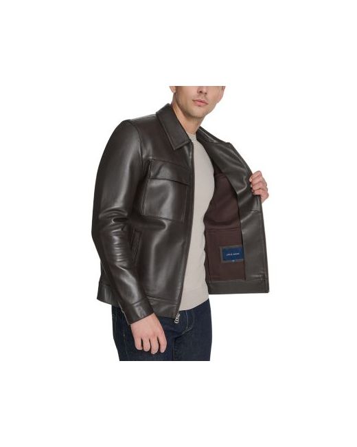 Cole Haan Zip Front Jacket.Color:Dark Brown.Size:XX Large.Material:Face: leather; back: 100% viscose.Jackets.