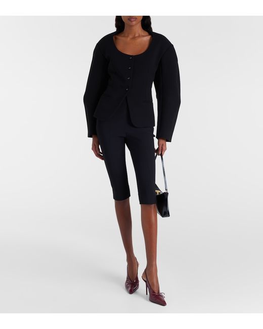 Material: 93% polyamide, 7% elastane. Care instructions: dry clean. Made in Bulgaria. Designer color name: Black. Item color: black. Lining: 97% cotton, 3% elastane. Closure: concealed zipper, zipped side, hook fastening. Hem: elasticated.