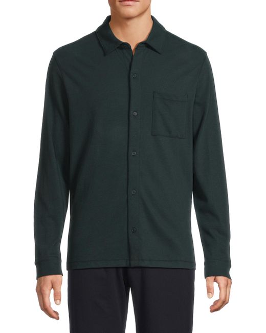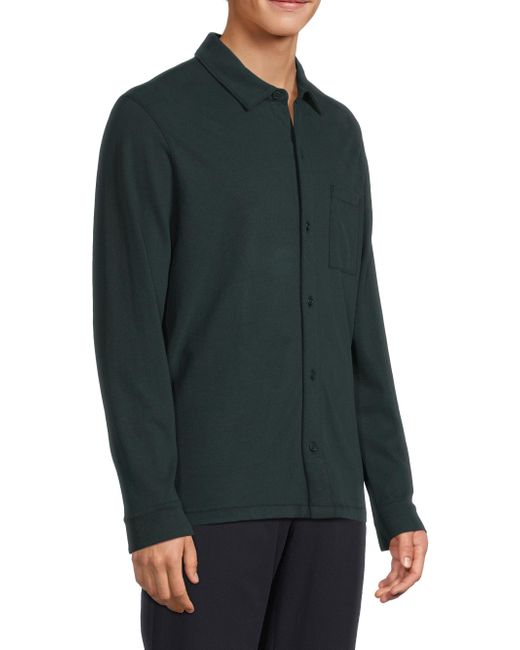 Crafted of soft sueded cotton jersey, this Vince shirt features a spread collar and long sleeves. A chest patch pocket and button cuffs finish the design. Spread collar Long sleeves, button cuffs Chest patch pocket Button-front closure 100% cotton Machine wash Imported SIZE & FIT About 28" from shoulder to hem Model measurements: 6'2" tall, 40" chest, 31" waist Model is wearing a US size Medium. Mens Modern Coll & Outer - Modern Collections > Vince > Saks Fifth Avenue. Vince. Color: Country Racer. Size: Large.