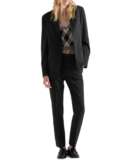 Straight fit Unlined garment Zipper fly with button Fabric triangle logo Angled slash front pockets Double welt back pockets Imported 100% Fleece Wool. Lsd Rtw - Prada Rtw > Prada > Saks Fifth Avenue. Prada. Color: Black. Size: 8.