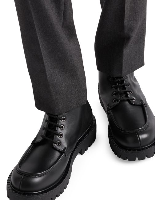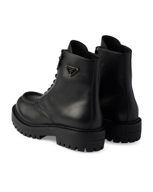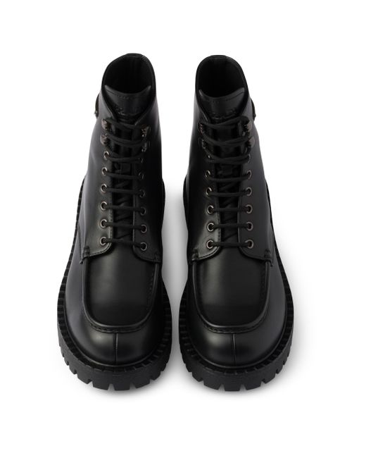 With laces Enameled metal triangle logo on the upper Prada Milano logo on the tongue Rubber sole with leather welt Lug tread Heel height: 44 mm / 1.7'' Removable leather-covered insole Imported 100% Calf leather. Lsd Rtw - Prada Rtw > Prada > Saks Fifth Avenue. Prada. Color: Black. Size: 7.5.