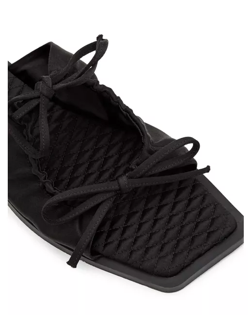 black quilted footbed adjustable double bow closure square toe flat sole