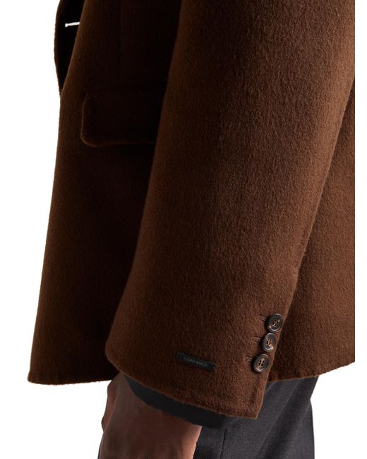 Straight fit Peak lapel Center vent Four-button closure Three-button cuffs Flap pockets Unlined Fabric triangle logo and sartorial logo label Double fabric garment with hand-stitching Imported 100% Cashmere. Lsd Rtw - Prada Rtw > Prada > Saks Fifth Avenue. Prada. Color: Brown. Size: 40.