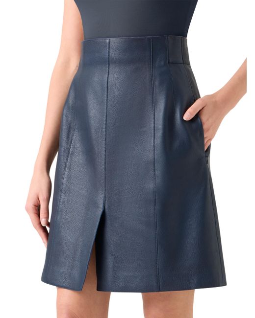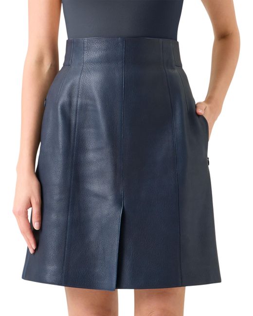 Crafted of Nappa leather, Akris' short skirt elevates the fitted silhouette with seam details, front slit, and side zip pockets. Clean waist Side zip pockets Front slit Back zip closure 100% leather Lining: 93% viscose/7% elastane Professional leather clean Imported SIZE & FIT Model measurements: 5'10" tall Model is wearing a US size 4 ABOUT THE BRAND Founded in 1922 in St. Gallen, Switzerland, the name Akris was derived from founder Alice-Kriemler Schoch's initials. The entrepreneurial designer first started designing dotted aprons with intricate embroidery and soft cotton, which quickly grew into a full line of ready-to-wear. Almost 100 years later, the brand is now helmed by her grandsons. Creative Director Albert Kriemler continues to pay homage to his grandmother through polka-dot lined clothing, luxe fabrications and modern design-which now include sleek accessories like the cult-favorite AI trapezoidal handbag. Advanced European - Akris > Akris > Saks Fifth Avenue. Akris. Color: Denim. Size: 4.